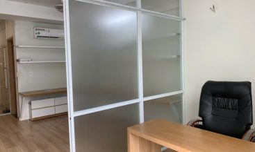 + Thiết kế văn phòng, có vách ngăn, 2 máy lạnh, bàn ghế tủ kệ.