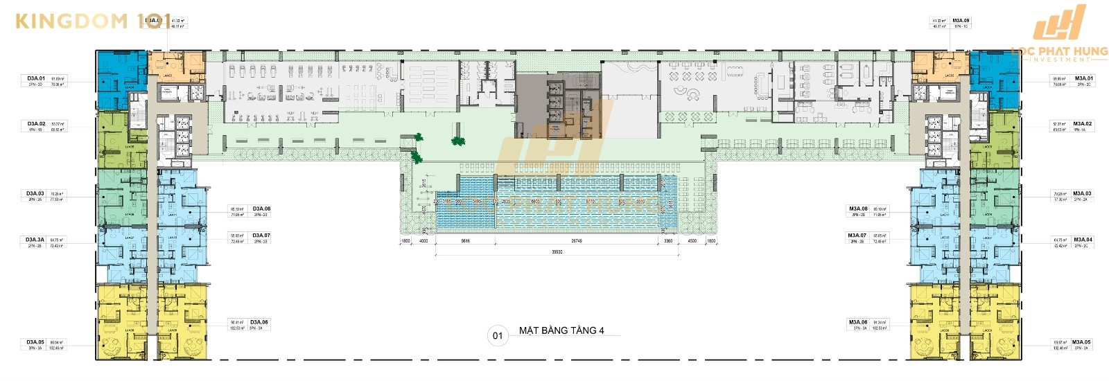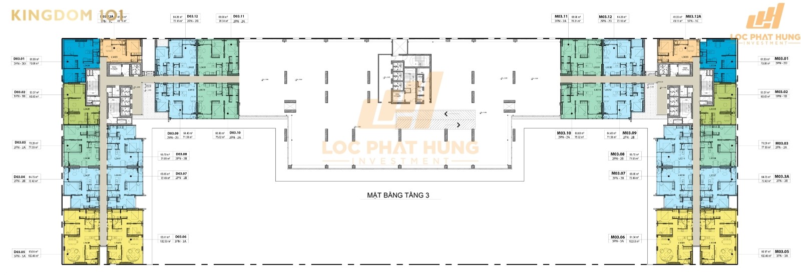 Mặt bằng chi tiết căn hộ Kingdom 101 thoáng đãng, mang đến tầm nhìn hướng gió cho toàn bộ căn hộ. Dự án được xây dựng trên quy mô 3,3ha bao gồm 3 block cao 30 tầng để đem đến cho khách hàng 986 căn hộ chất lượng cao đảm bảo được nhu cầu của các khách hàng khó tính nhất. Ngoài ra Kingdom 101 còn mang đến nhiều sự lựa chọn về loại hình sản phẩm cho khách hàng khi chủ đầu tư xây dựng rất nhiều loại hình đa dạng từ 1 phòng ngủ đến căn hộ Duplex.