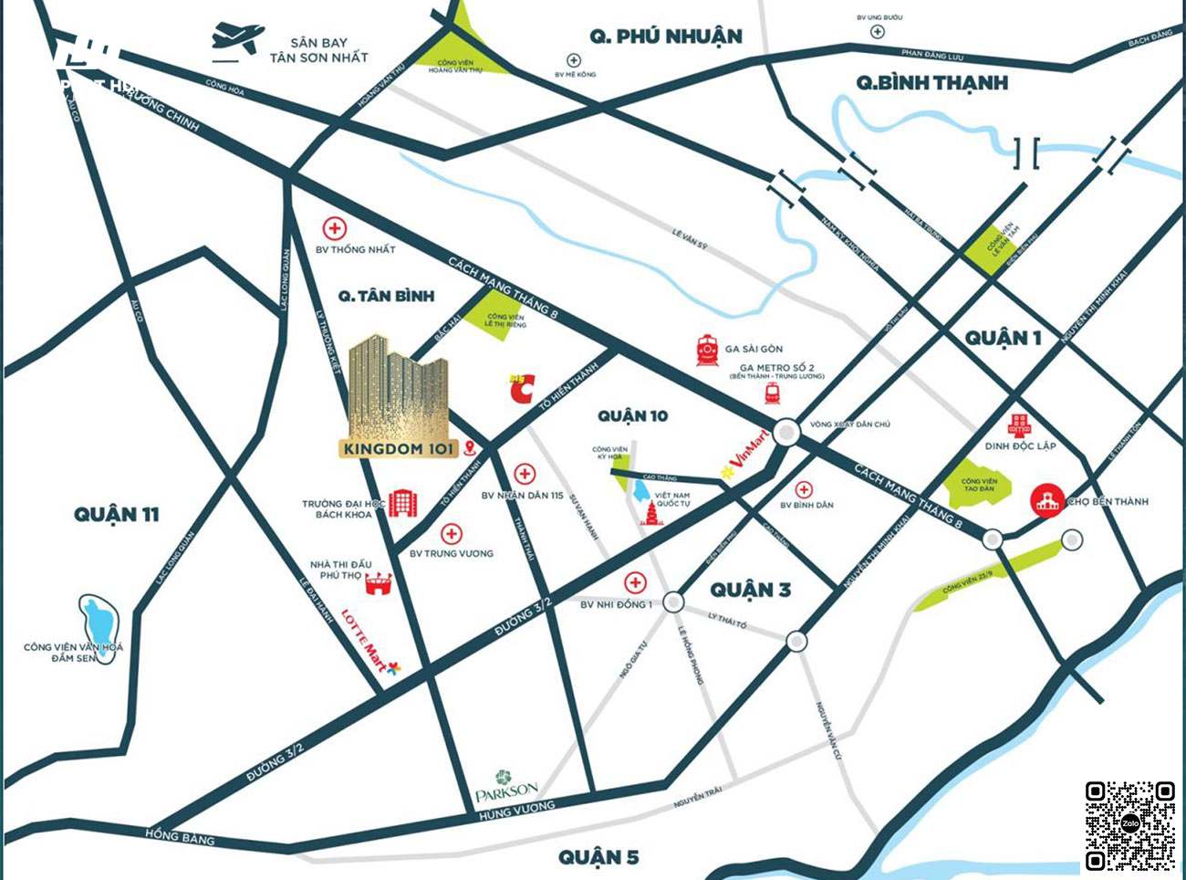 Có thể thấy vị trí đắc địa của dự án căn hộ Kingdom101 cực kỳ hiếm hoi mà không phải bất cứ dự án bất động sản nào trong khu vực có được. Hơn thế nữa từ căn hộ Kingdom101 bạn có thể đi đến các địa điểm quan trong như (Phố đi bộ, chợ Bến Thành, nhà hát Thành Phố, sân bay….) chỉ trong vài phút đi xe mà không lo vấn đề giao thông và kẹt xe.