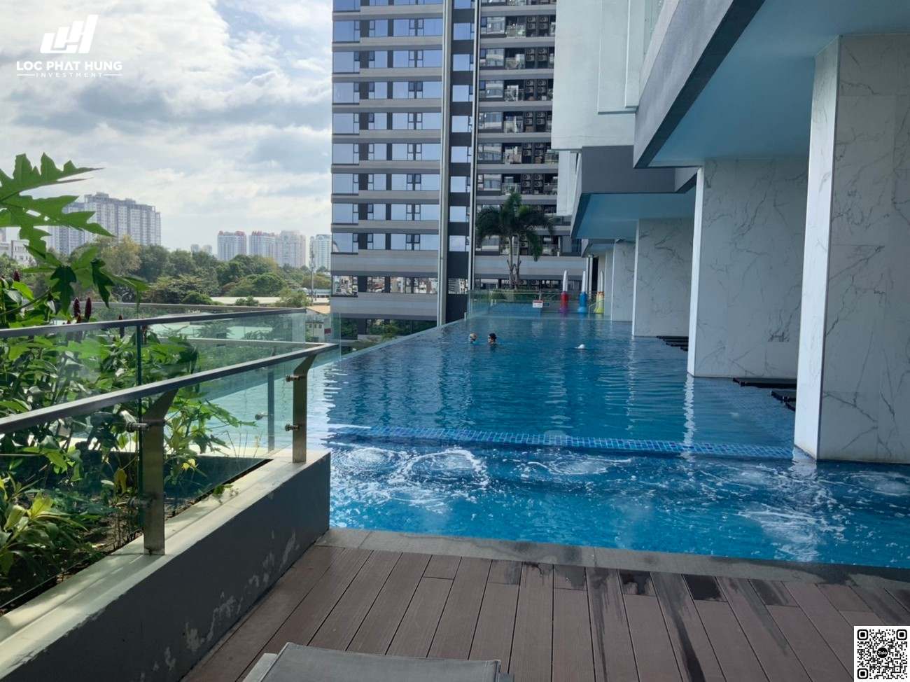 - Hồ bơi chân mây vô cực rộng 680m2 tại tầng 4 trực diện công viên.
