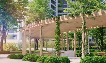 - 85 vườn treo chuẩn xanh rộng khắp tòa nhà từ tầng 2 đến tầng 30. Tổng diện tích mảng xanh vườn treo lên đến 5.000m2. Nhìn từ bên ngoài thì căn hộ Kingdom 101 được bao phủ 3600 bởi mảng xanh.