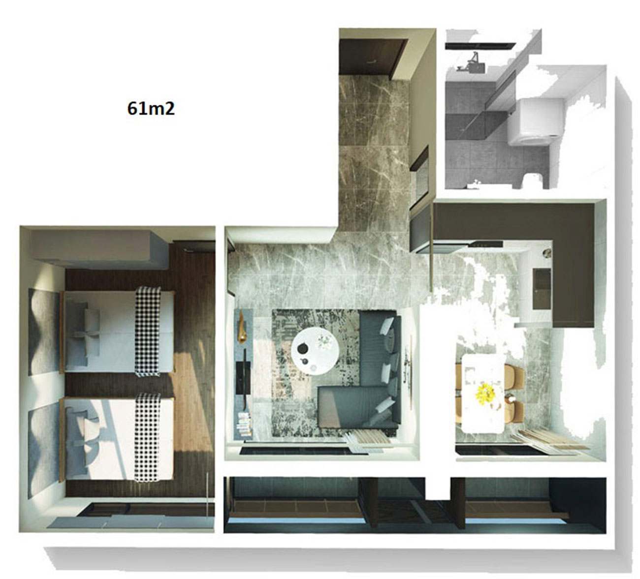 | 1 PHÒNG NGỦ | 48 – 61 | 162 | 16,4% |
