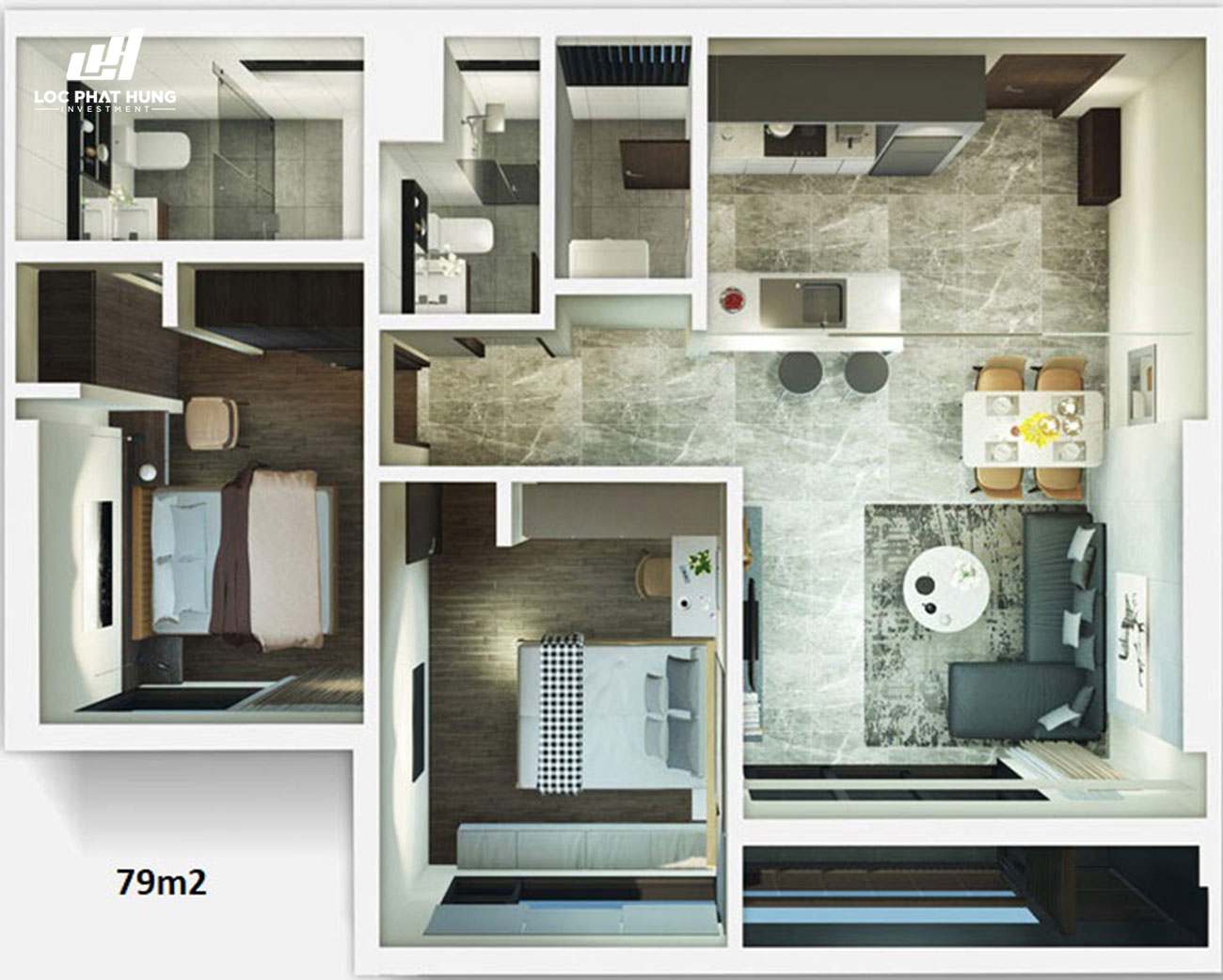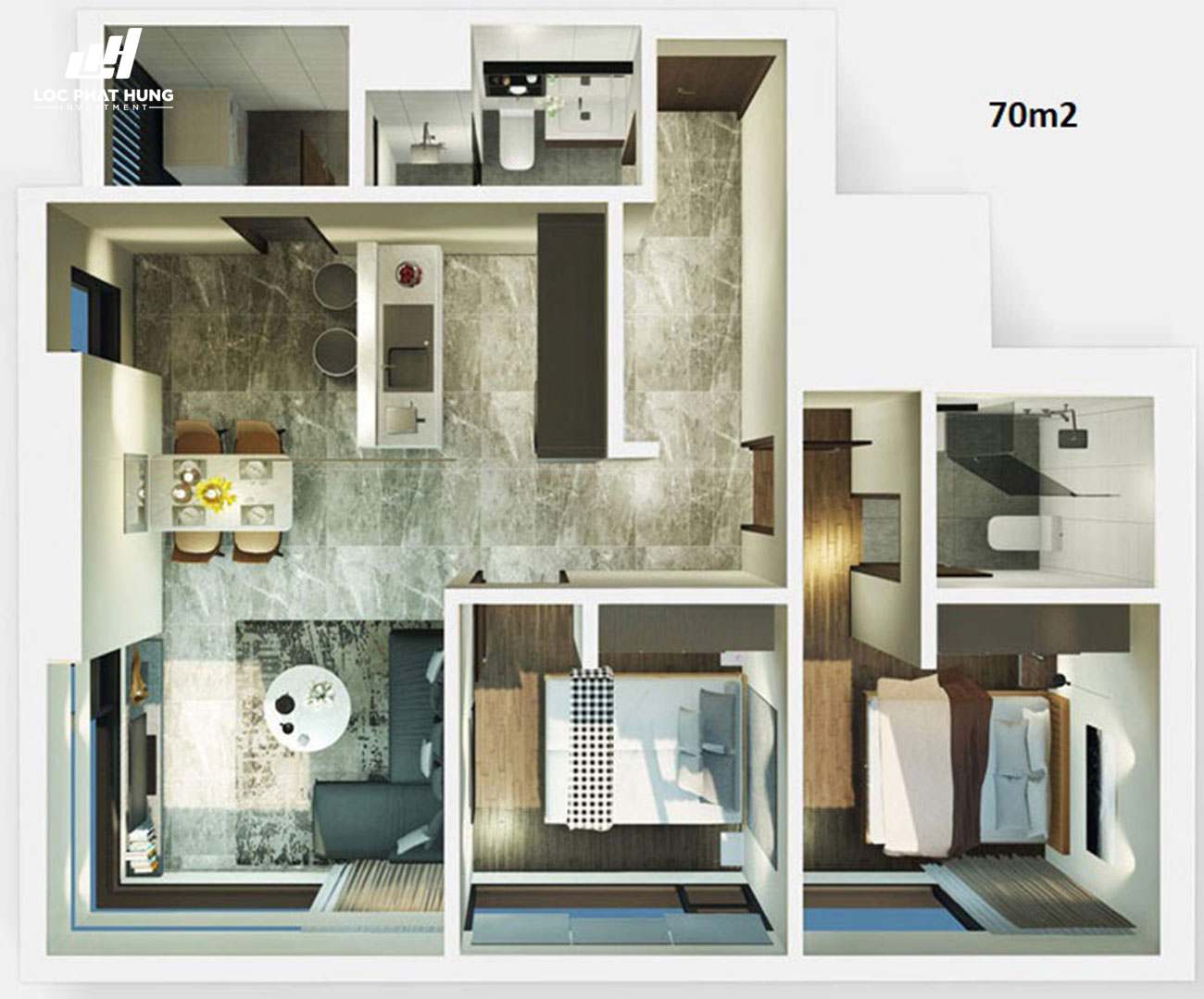 | 2 PHÒNG NGỦ | 70 – 79 | 692 | 70,2% |